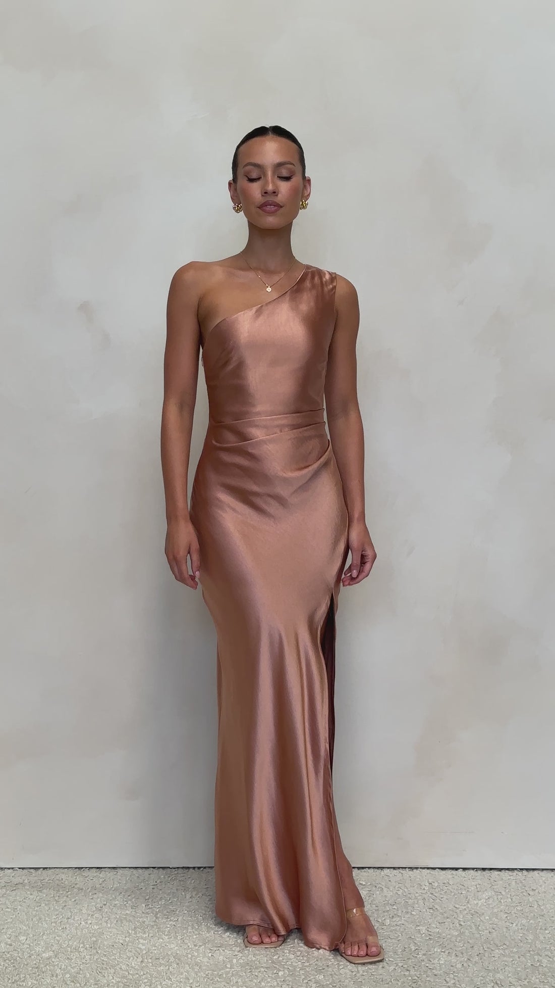 Crafted with elegance in mind, the Victoria Maxi Dress will elevate your style to new heights. Featuring a chic one shoulder design and a gathered waist, this dress provides both comfort and sophistication. With a knee high side leg split and invisible side zipper, this maxi length dress is perfect for any occasion.